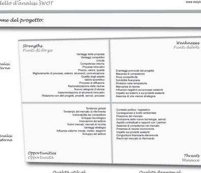 L’analisi SWOT permette praticamente di inquadrare in modo chiaro e sintetico tutte le variabili che possono agevolare o ostacolare la realizzazione di un evento distinguendo tra fattori legati all’ambiente esterno e fattori legati invece all’organizzazione interna.