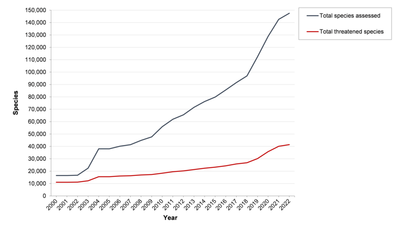 Sur la base des travaux menés par l'UICN, on peut dire que le nombre d'espèces menacées ou en voie d'extinction augmente, mais il faut garder à l'esprit que la population de référence augmente également. En pourcentage, ces deux variables permettent d'obtenir un pourcentage en baisse. En d'autres termes, le fait que l'augmentation du nombre d'espèces recensées soit plus marquée que celle des espèces en danger est une donnée positive. Compte tenu du contexte encore incertain, avec 93% d'espèces non évaluées, il est néanmoins judicieux d'interpréter ces dynamiques avec prudence, qu'elles soient catastrophiques ou optimistes.